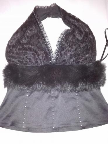 SatenVrlo elegantna majca-korset. Materijal saten sa pravim krznom i cirkonima br. 40 za sve prilik.