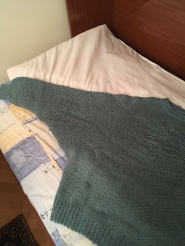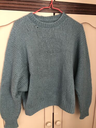 Džemper s kratkim rukavima i rol-kragnom – bordo/crvenkaste boje. - Model: klasičan pulover sa širokom, rebrastom rol-kragnom koja se preklapa - Rukavi: kratki, završeni rebrastim manžetnama - Por...