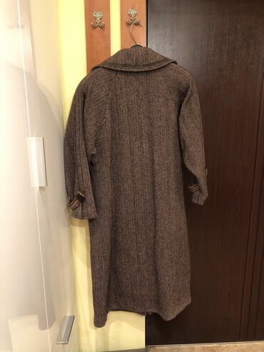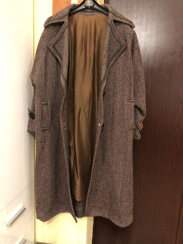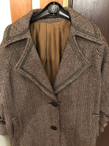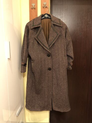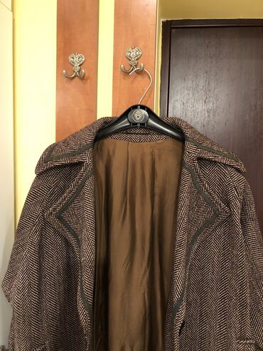 Vuneni kaput braon boje, dezen riblja kost, postavljen, sa ranglan rukavima.