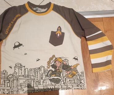 Dečja dukserica s kapuljačom, svetloplava. Motiv na prednjoj strani: “52” sa krilima i zvezdicama. Dvostruke pruge duž oba rukava. Kengur džep napred, rebraste manžetne i pojas. Unutrašnjost kapulj...