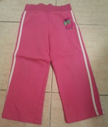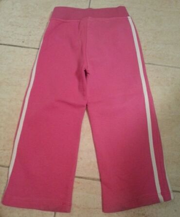 Dečije pantalone – vel. 92 (oko 2 godine) - Boja: svetloružičasta sa prugama u ton‑tonu - Kroj: ravne nogavice, elastični pojas za udobno pristajanje - Materijal: meki pamučni dres (prijatno na ko...