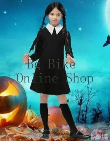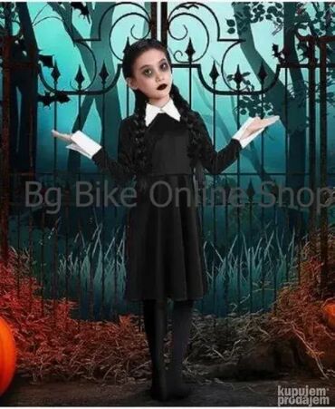 Wednesday Adams family haljina kostim Sreda sa kragnicom. Pre poručivanja izmerite dete od ramena do kolena i obim grudi. Na pakovanju su veličine S , M i L a mi smo otprilike odredili godine. Ko želi dodatno: Perika - 1200 dinara Ruka - 1600 dinara S - 5 do 7 godina - duzina haljine 68cm, obim grudi od 64 do 74cm se moze rastegnuti M - 7 do 9 godina - dužina haljine 74cm, obim grudi od 70 do 80cm se moze rastegnuti. L - 9 do 11 godina - dužina haljine 79cm, obim grudi od 80 do 100cm se moze rastegnuti. ⭐wendsday vensdej venzdej Noć veštica, halloween, maskenbal, maskembalPOGLEDAJTE OSTALE NASE OGLASE> > > > > > > > > > > > > > > > > > > > > > > > > > > > > > > > > > > > > > > > > > Trudimo se da odgovorimo i posaljemo artikal u kratkom roku. Pre slanja cemo obavezno jos jednom potvrditi detalje. Robu saljemo Post Expressom. Postarinu placa kupac prema cenovniku koji mozete videti na njihovom sajtu. Robu mozete preuzeti i licno na Novom Beogradu uz obavezan prethodni dogovor. Povracaj i reklamacije na robu u skladu sa Zakonom o zastiti potrosaca. BG BIKE ONLINE SHOPBeogradMaticni broj: 65560429PIB: