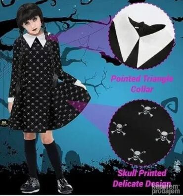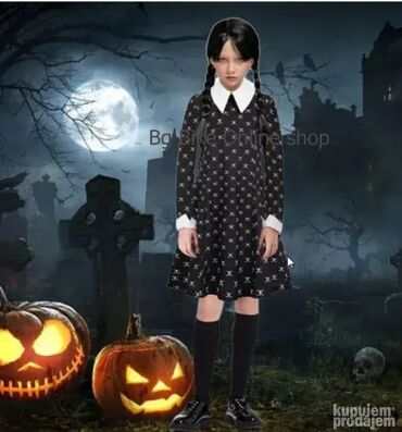 Wednesday Adams family haljina kostim Sreda školskaSa kragnicom i kosturimaPre poručivanja izmerite dete od ramena do kolena i obim grudi. Ko želi dodatno:Perika - 1200 dinara Ruka - 1600 dinara Na pakovanju su veličine S , M i L a mi smo otprilike odredili godine. S - 5 do 7 godina - duzina haljine 68cm, obim grudi od 64 do 74cm se moze rastegnuti. M - 7 do 9 godina - dužina haljine 74cm, obim grudi od 70 do 80cm se moze rastegnuti. L - 9 do 11 godina - dužina haljine 79cm, obim grudi od 80 do 100cm se moze rastegnuti. Noć veštica, halloween, maskenbal, maskembal wendsday vensdej venzdejPOGLEDAJTE OSTALE NASE OGLASE> > > > > > > > > > > > > > > > > > > > > > > > > > > > > > > > > > > > > > > > > > Trudimo se da odgovorimo i posaljemo artikal u kratkom roku. Pre slanja cemo obavezno jos jednom potvrditi detalje. Robu saljemo Post Expressom. Postarinu placa kupac prema cenovniku koji mozete videti na njihovom sajtu. Robu mozete preuzeti i licno na Novom Beogradu uz obavezan prethodni dogovor. Povracaj i reklamacije na robu u skladu sa Zakonom o zastiti potrosaca. BG BIKE ONLINE SHOP BeogradMaticni broj: 65560429PIB:
