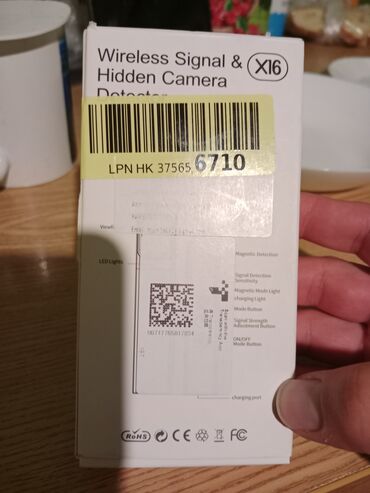 Kutija navodi sertifikate: RoHS, CE, FCC. Model: X16.