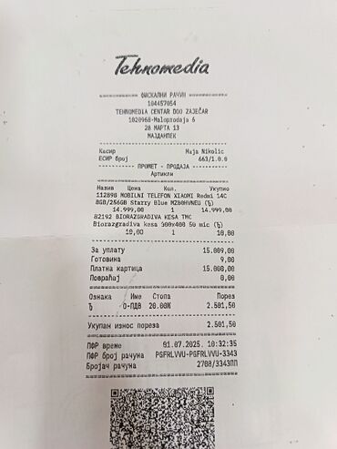 Xiaomi Redmi pametni telefon - Ekran: veliki ekran sa „punch‑hole“ rupicom za prednju kameru u centru gornjeg dela. - Zadnja kamera: 13 MP glavna kamera sa LED blicem (označeno na modulu). - Softv...