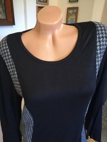 Džemper-haljina, veličina M. Tamno siva boja, dugi rukavi, drapirani karo izrez sa dekorativnim lančićima/perlicama preko grudi i ramena. Uska, elastična silueta koja prati liniju tela. Dimenzije:...1 000 RSD