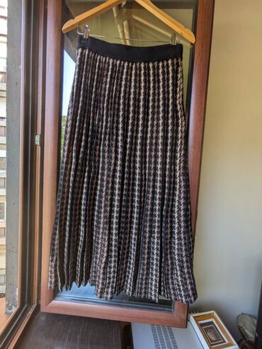 UpotrebljenоProdajem suknju jesenju/zimsku, veličina l/XL na lastih u pojasu. Dimenzije: nerazvučen pojas 37, razvučen 43, dužina sa pojasom 87, bez pojasa 82 cm, sastav mešavina, 20% pamuk, 29% viskoza.