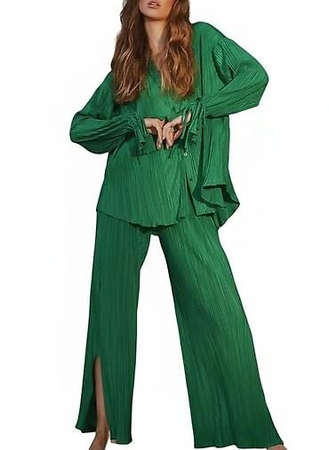 ✅Ženski komplet – plisirana bluza i široke pantalone, crna boja. ✅2800
