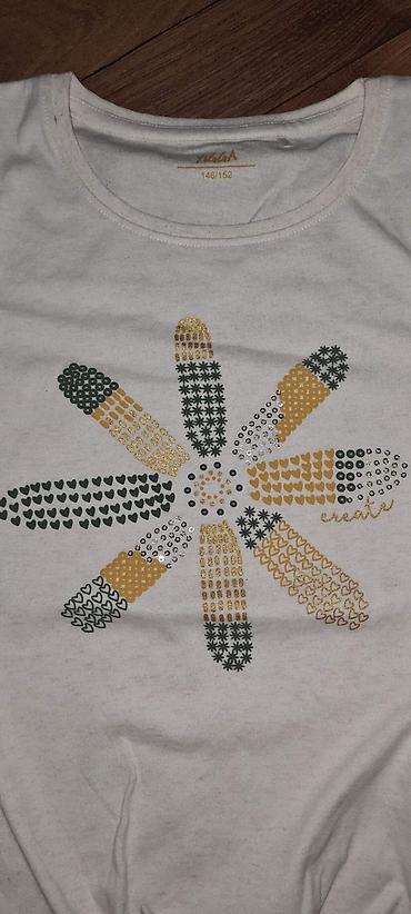 Plišani dukser – veličina 134/140 - Materijal: mekan pliš/velur, prijatan na dodir - Boja: tamno‑zelena/teal - Kroj: klasičan sweatshirt, okrugli izrez, duži rukavi sa ranflama, ranfla i na donjem...
