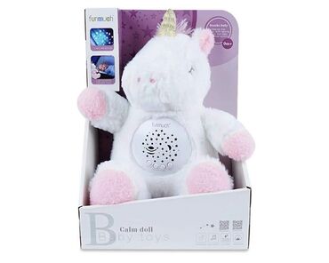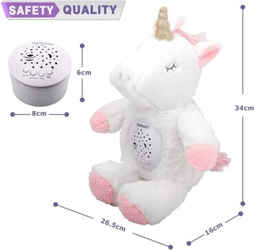 Igračka je mekana, prijatna na dodir; na stomaku je projektor koji svetli u različitim bojama, pušta uspavanke, razne zvukove za spavanje.