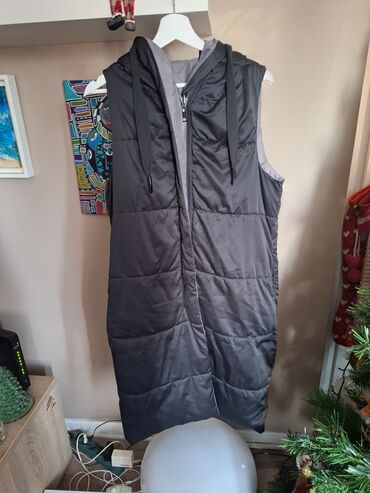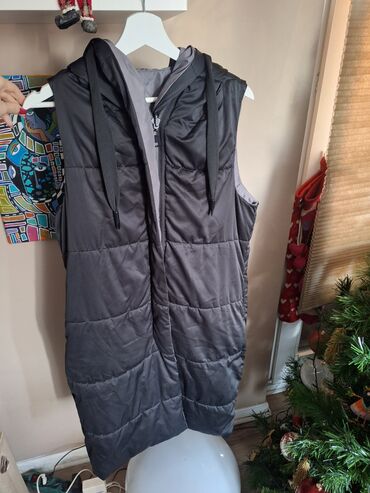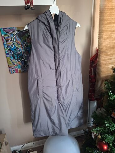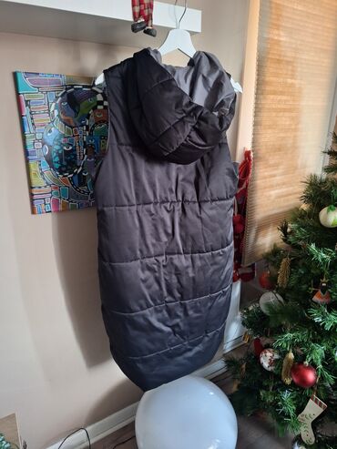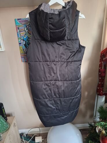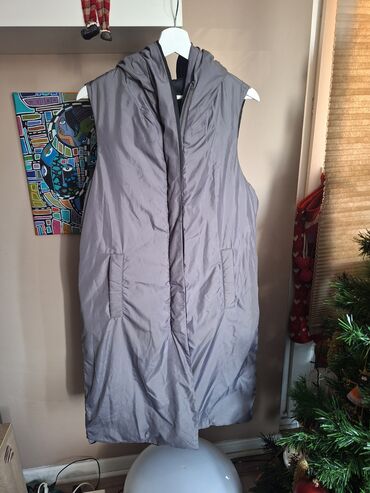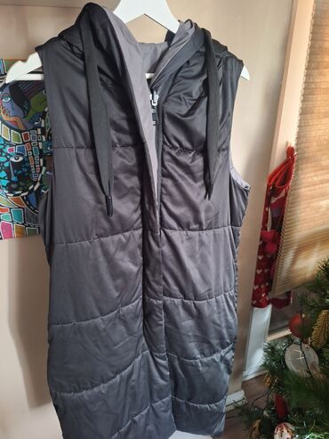 Drugi materijalZara dugacak prsluk sa dva lica, ima kapuljacu, s-m velicina, skinuta je i unutradnja etiketa, prsluk je tanji, jedno lice je crno, drugo sivo, nema ostecenja