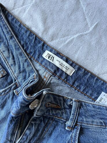 Ženske džins pantalone – širok/kombinezonski kroj - Materijal: lagan teksas (denim), prijatan za toplo vreme - Boja: srednje plava sa blagim ispranim efektom - Visina struka: srednji struk - Kroj ...