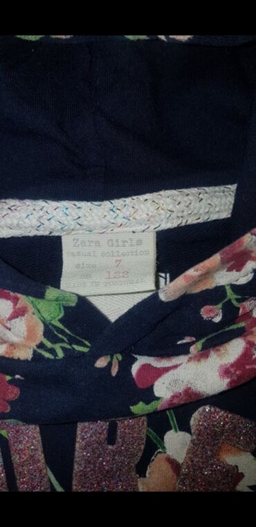 Zara girls za devojcice dux dukserica sa kapuljacom. Cvetni dezen, teget. Za 7-8 godina. Snizz