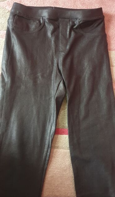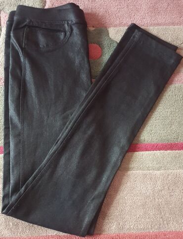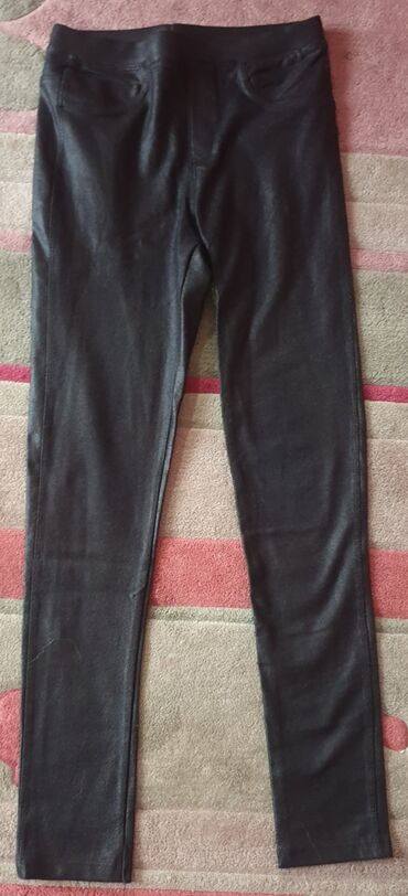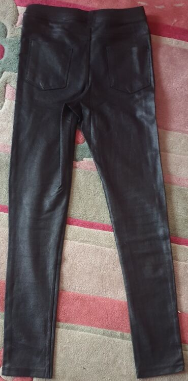 UpotrebljenоZARA kozne pantalone uske skinny model kao helanke. izgledaju kao kožne, ali naravno nisu. ima baš dosta elastina, rastežu se. velicina 11-12 pise, za 12 godina. crne boje. kad skroz izbliza gledate, nijansa svelija na kolenima.. ne mogu to uspeti da slikam, ali kad ih izbliza proučavate, primećuje se malo.