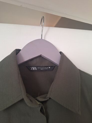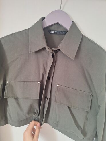 Maslinasto zelenaZara maslinasat krop kosulja, deblji materijal, moze da se nosi i kao jaknica preko necega, velicina xs, odgovara i za s, sa srebrnim detaljima, nosena samo jednom