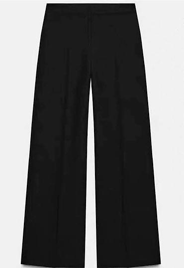 - Pantalone visokog struka, ravnog/širokog kroja sa blagim plisama po dužini nogavica za produžen efekat nogu