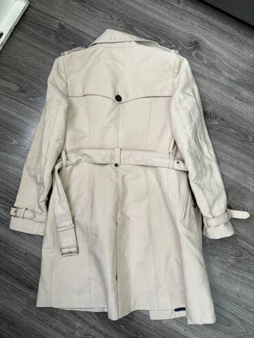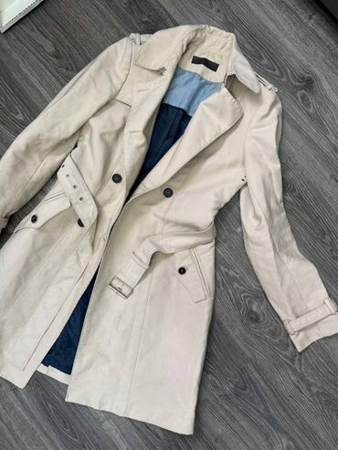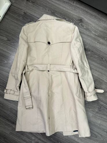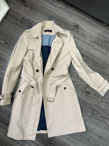 JednobojniZARA trench mantil, puniji, postavljen, kvalitetan, samo je potrebno hemijsko čišćenje. Veličina je S a dimenzije, mereno sa leđne strane kad je potpuno zakopčan su: ramena od šava do šava gde su našiveni rukavi 39 cm, od pazuha do pazuha 46 cm, poluobim struka 38 cm. Dužina, mereno od ispod kragne do dole 89 cm a dužina rukava, mereno sa gornje ivice 62 cm.