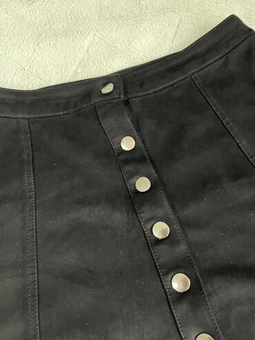 Crna mini suknja, veličine S-M, sa poluobimom struka od 32-40 cm i dužinom od 38 cm. Dizajn uključuje vertikalne pruge i vidljivo kopčanje na dugmad sa prednje strane. Pogodna je za razne prilike i...