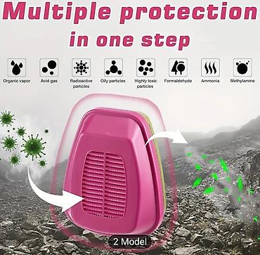 Maska pokriva celo lice i pruža odličnu zaštitu prilikom rada sa hemikalijama, bojama, prašinom i dimom.