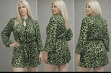 Zelena mini haljina s leopard printom - Kroj: mini dužina, blago
