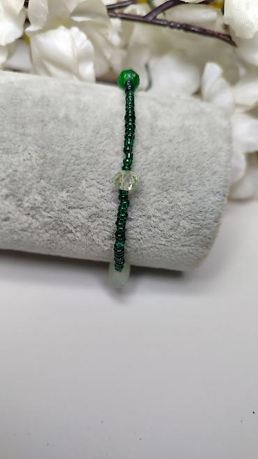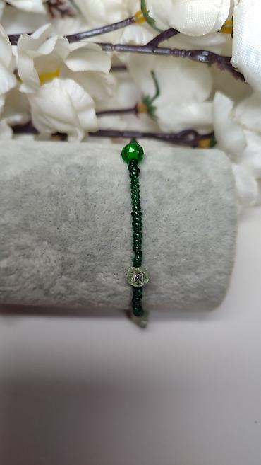 - Manje tamnozelene perlice duž čitave narukvice za elegantan, minimalistički izgled