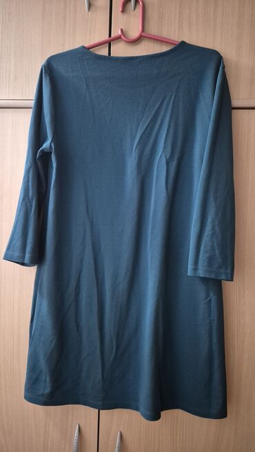 Ženska tunika/bluza u senf žutoj boji. - Materijal: lagan, plisiran tekstil sa sitnim vertikalnim naborima koji vizuelno izdužuju figuru - Kroj: ležerniji, duža dužina koja prekriva kukove - Izrez...