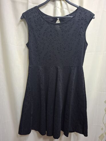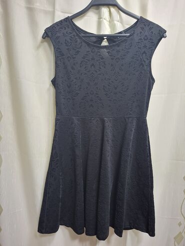 Crna elegantna haljina A‑kroja sa reljefnim baroknim/floralnim dezenom.