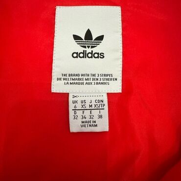 - Dizajn: visok okovratnik, elastičan porub i manžetne, Adidas trefoil logo na levoj strani grudi, veliki “adidas” natpis na desnom rukavu i tri pruge duž rukava