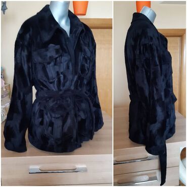 Elegantna ženska košulja-jakna sa krznenim okovratnikom(prirodno krzno) - Model: košulja-jakna ravnog kroja sa spuštenim ramenima - Veličina: L/XL (naznačeno na fotografiji) - Materijal: mekana tk...