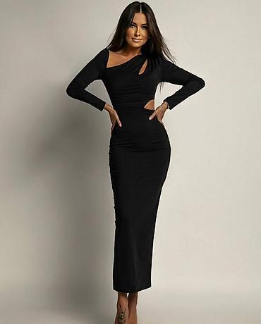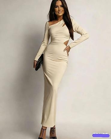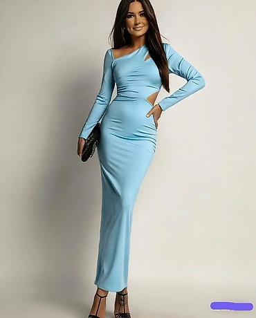 🔥Elegantna večernja haljina – asimetrični kroj, dugi rukavi, maxi dužina