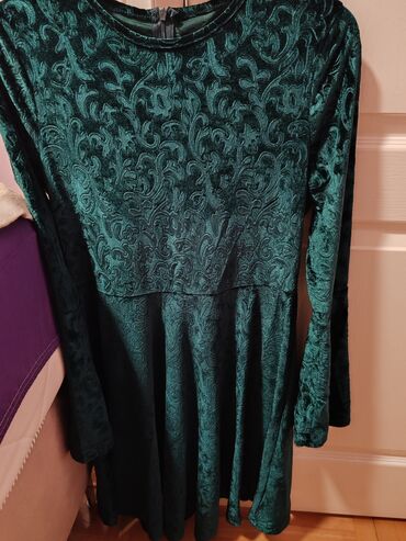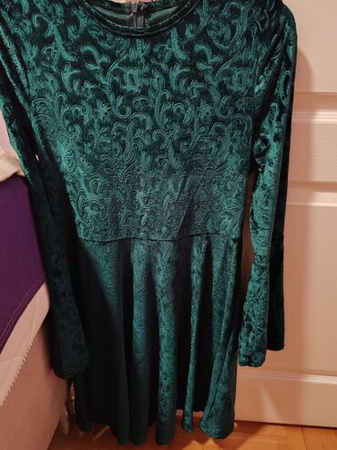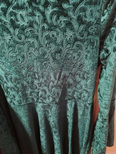 Zelena baršunasta haljina sa reljefnim floralnim dezenom.