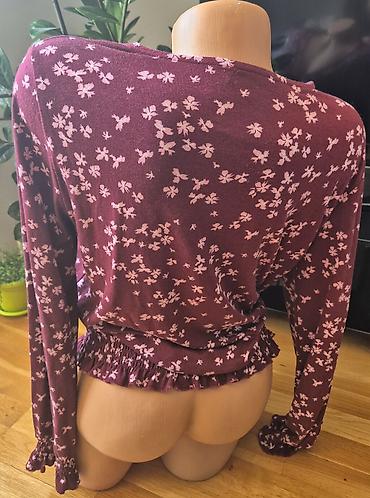 - Boja: tamno bordo/burgundi osnova sa sitnim svetloružičastim cvetnim printom