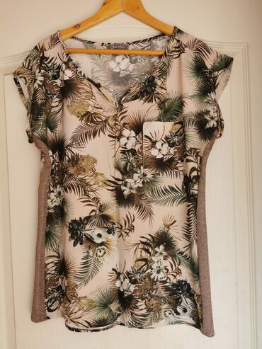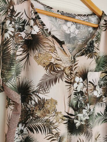 - All-over tropski print (palme i listovi) u sivoj i bež nijansi