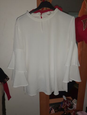 Ženska bluzica/majica sa dugim rukavima, u metalik zlatnoj boji. - Kroj: preklopni V-izrez sprijeda (wrap stil) sa blago skraćenom dužinom do struka. - Materijal: sjajna, plisirana/teksturirana tka...