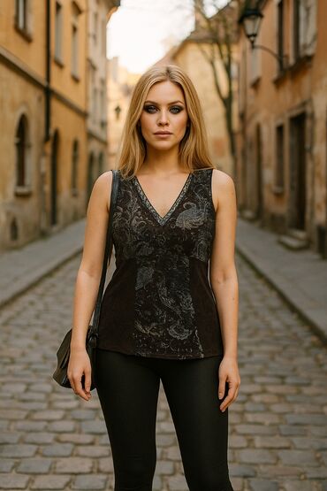 Ženska bluzica s dugim rukavima i zanimljivim drapiranim detaljem na struku. Asimetrično nabrana sa ukrasnom metalnom kopčom/konicom sa strane, koja vizuelno ističe struk i daje elegantnu siluetu. ...