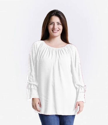 Ženska bluza sa dugim rukavima, izrađena od 100% pamuka. Dizajn karakteriše kombinacija crne boje i crveno-crnog kariranog dezena. Bluza ima asimetričan kroj sa dugmadima duž desne strane prednjeg ...