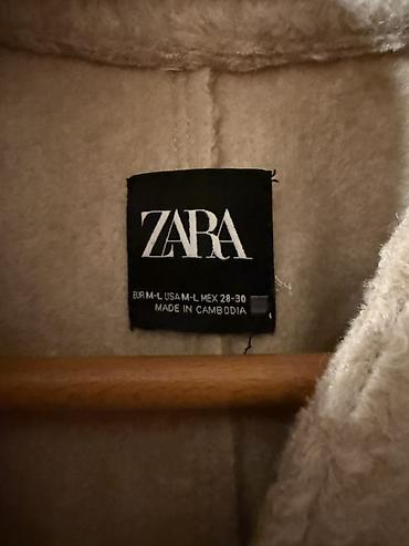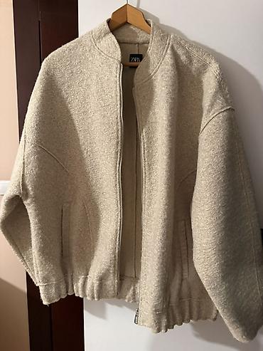 ZARA ženska jakna u bež/boja peska nijansi. Model u stilu bomber/štitnik jakne sa blago spuštenim ramenima i elastičnim porubom.