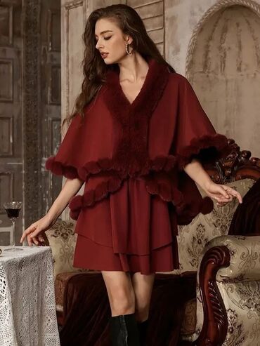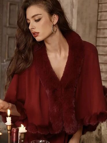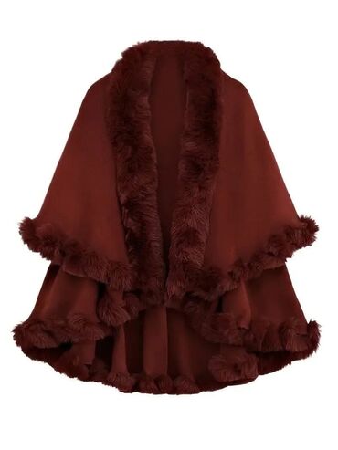 🔥Ženska elegantna pelerina/pončo u bogatoj bordo boji sa luksuznim krznenim obrubom.