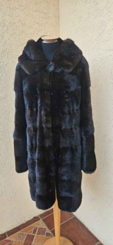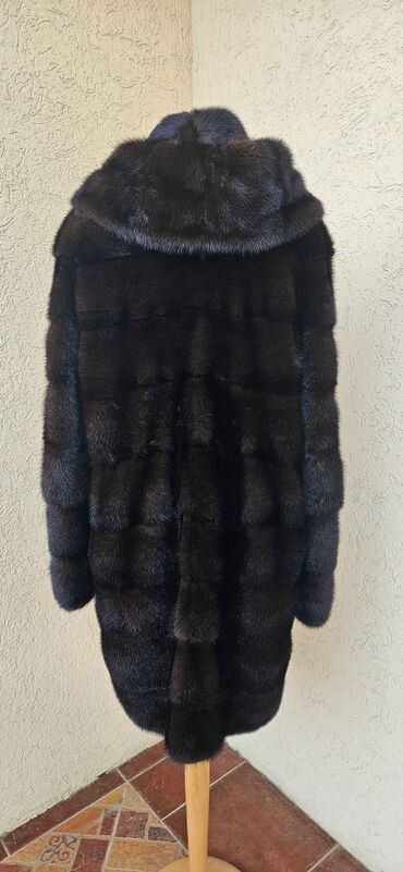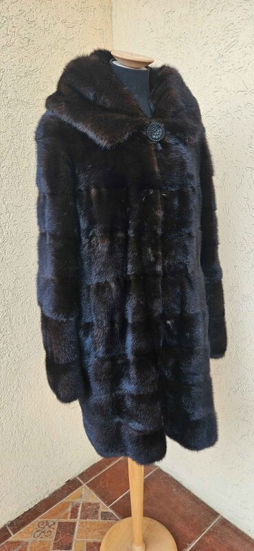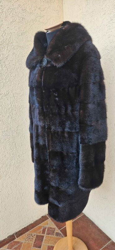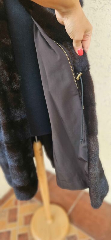 Prirodno krzno kaput – veličina L - Materijal: prirodno krzno, bogata, tamno‑braon nijansa sa prirodnom šarom - Kroj: klasičan, ravnog pada do ispod kukova - Kragna: široka, mekana - Postava: glat...