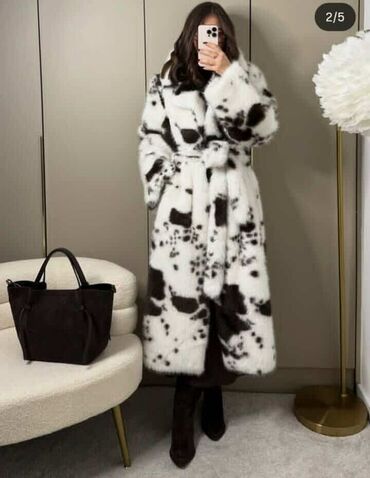 O trošku kupcaDuga ženska bunda od veštačkog krzna u crno-beloj “dalmatiner” šari. Model je ravnog kroja sa punim, voluminoznim rukavima i širokim reverima. Pojas od istog materijala omogućava vezivanje u struku i dodatno naglašava siluetu. Dužina do članaka obezbeđuje potpunu toplinu. Bunda ima bočne ušivene džepove i bogatu, meku teksturu krzna koja izgleda luksuzno i moderno. Idealna za zimske kombinacije uz čizme i elegantne modne dodatke.