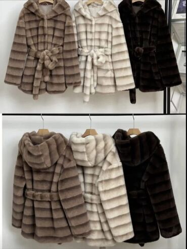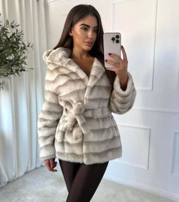Ženska kratka bunda s kapuljačom i pojasom