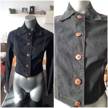 Ženska jakna/kaput od somota, tamno braon boje, dvoredno kopčanje sa ukupno 8 dugmića. Struk naglašen pojasom u istom materijalu (kopča se napred). Revers može da se nosi otvoren ili zakopčan do vr...