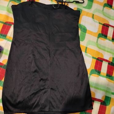 Elegantna crna satenska haljina sa tankim bretelama. Kratak, uski kroj