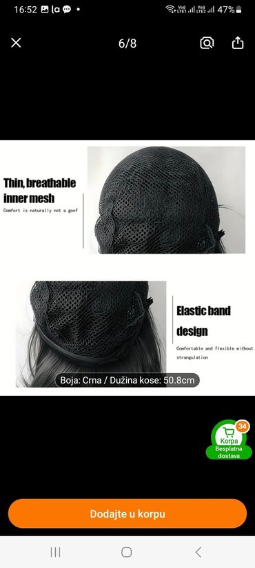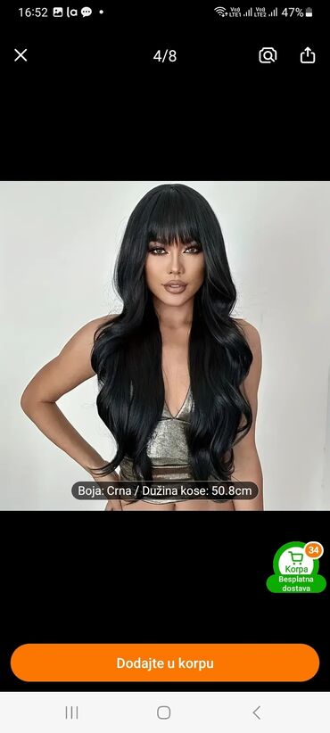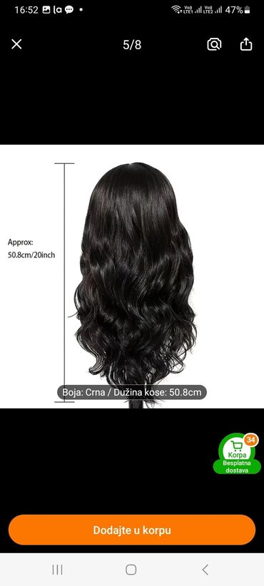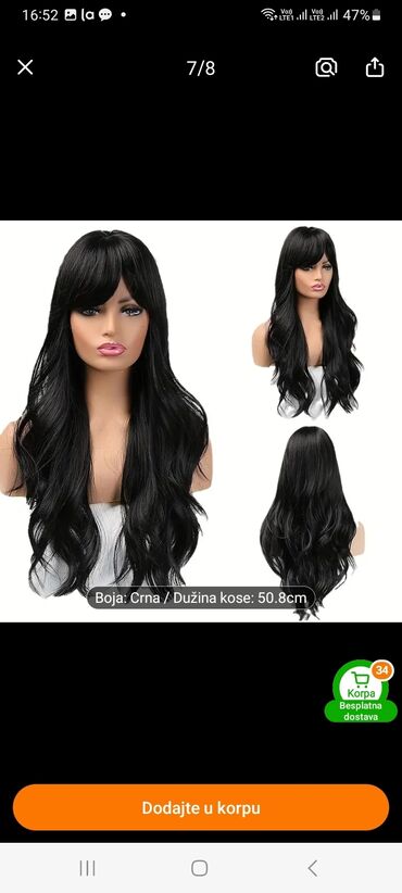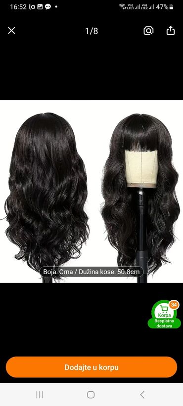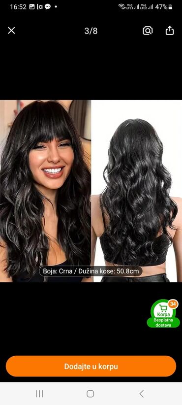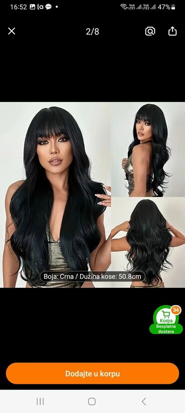 Crna talasasta perika sa trakom (headband wig) - Stil: dugi, mekani talasi/kovrdže, prirodan visok sjaj - Boja: duboka crna - Ugrađena široka elastična traka (crna) za brzo i sigurno postavljanje ...