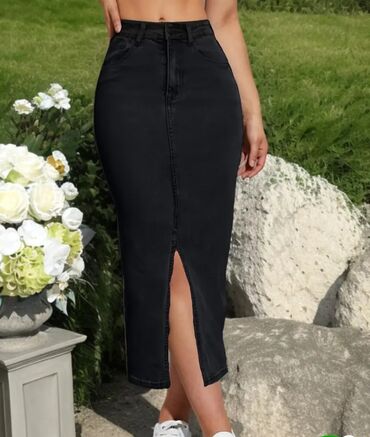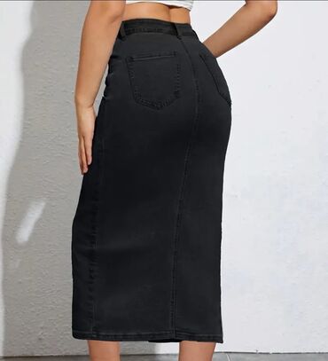 ZimskaCrna teksas midi suknja sa dubokim strukom i prednjim prorezom