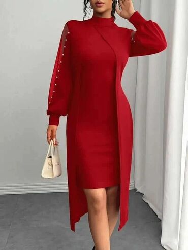 Elegantna večernja haljina – crna, duga, sa dramatičnim šlepom i visokim šlicem. - Kroj: sirena/suknja sa naborima napred, visoki otvor na butini, produženi asimetrični šlep sa strane. - Gornji de...