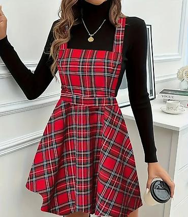Crvena karirana suknja-haljina sa tregerima - Model: suknja-haljina