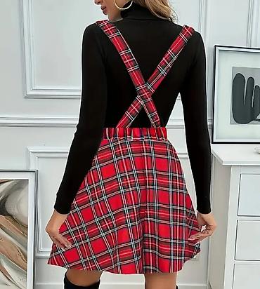 Crvena karirana suknja-haljina sa tregerima