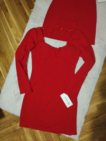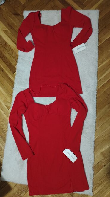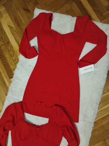 Crvena mini haljina s dugim rukavima - Model: uska silueta, dužina