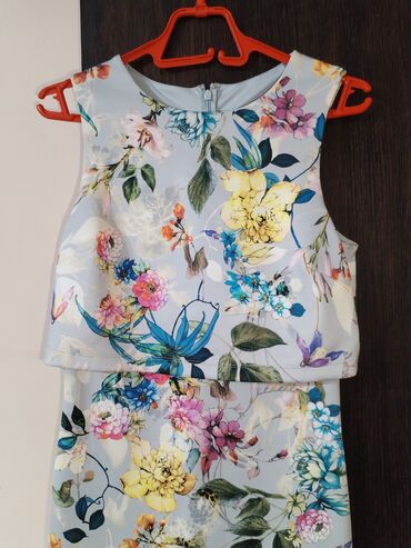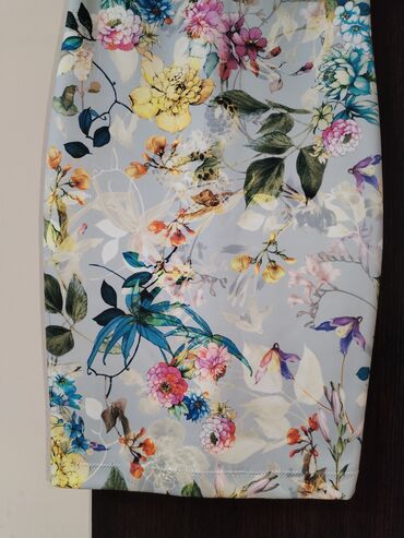 - Print: bogat cvetni dezen u pastelnim i živim tonovima (žuta, ružičasta, plava, zelena) na svetlosivoj podlozi